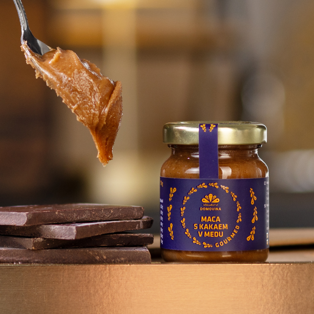 Maca má svou typickou, zemitou chuť. My jsme ji chtěli proměnit v něco, na co se budete těšit i ve všední den. Proto jsme spojili mletou macu, jemné kakao a náš květový pastovaný med. Výsledek je harmonický: med chuť zaoblí, kakao ji zjemní a maca zůstane jako příjemné, nenápadné pozadí.